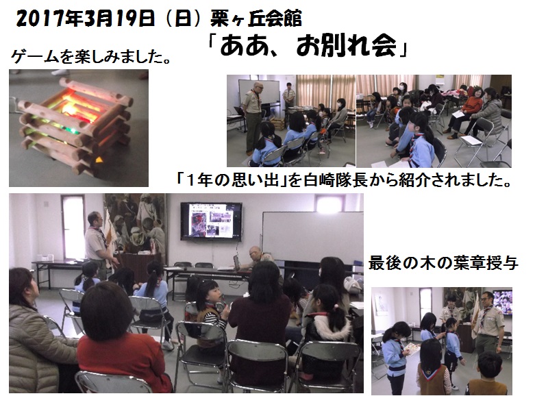 12月21日に4名のスカウトがBVS隊を修了して、カブ隊に上進することになった。寂しいけど、みんなおめでとう。