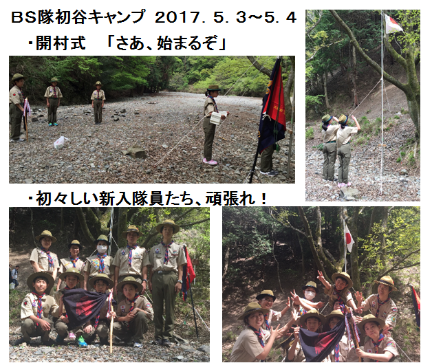 5月3日〜4日に初谷で、新入スカウトの初めてのキャンプ